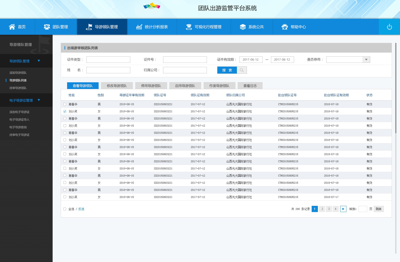 2)  導(dǎo)游/領(lǐng)隊管理:導(dǎo)游領(lǐng)隊管理、電子導(dǎo)游證管理。