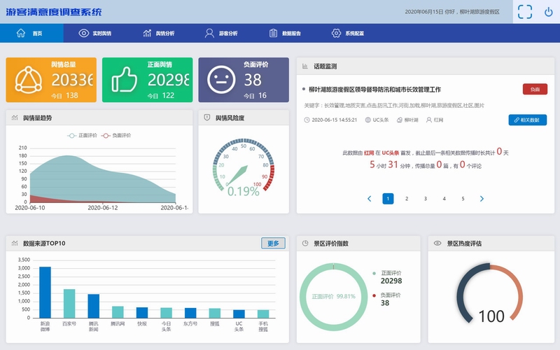 隨著旅游業的發展,人們外出旅游成為了時尚和假期的代名詞,但由于我國對旅游業的法律限制不夠,導致旅游出現拉客,強賣,強買等侵犯到游客的自身權利的事情發生,所以游客滿意度監測系統可以很好監督旅游行業的服務現象,根據監測數據,正確指導旅游監管理部門管理旅游市場, 最終提高游客對于旅游行業的滿意度。