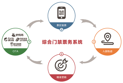 云平臺與眾多分銷商進行對接,分銷商訂單自動發(fā)送到云平臺,由云平臺自動轉發(fā)訂單到相應景區(qū),并且由云平臺向游客發(fā)送手機二維碼門票信息,游客憑借有效證件到景區(qū)取票(人工窗口或者自助機),或者憑手機二維碼直接通過閘機驗票進入景區(qū)。