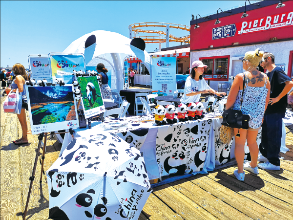 △ 2018年6月28日,在美國洛杉磯圣莫妮卡海灘進行了四川旅游宣傳,以熊貓走世界美麗四川活動為背景,熊貓彩繪DIT活動吸引了不少當?shù)厝罕娂坝慰汀?/p>