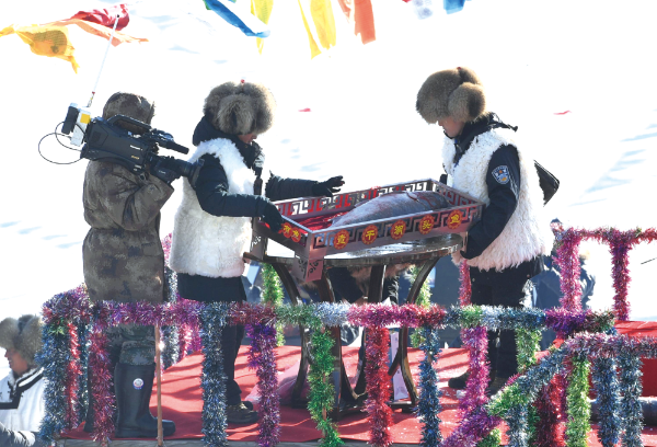 △ 2018年12月28日,查干湖冰雪漁獵文化旅游節(jié)在吉林松原拉開帷幕,數(shù)萬海內(nèi)外游客冒著嚴寒趕到現(xiàn)場觀看“冰湖騰魚”勝景。張瑤攝