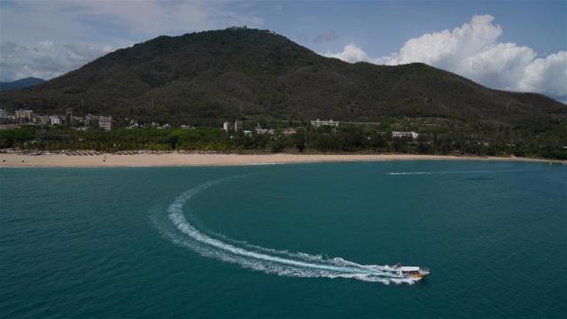 在海南省三亞市天涯海角旅游景區,游客乘坐游船參觀游覽(4月13日攝)。 新華社記者 李夢嬌 攝