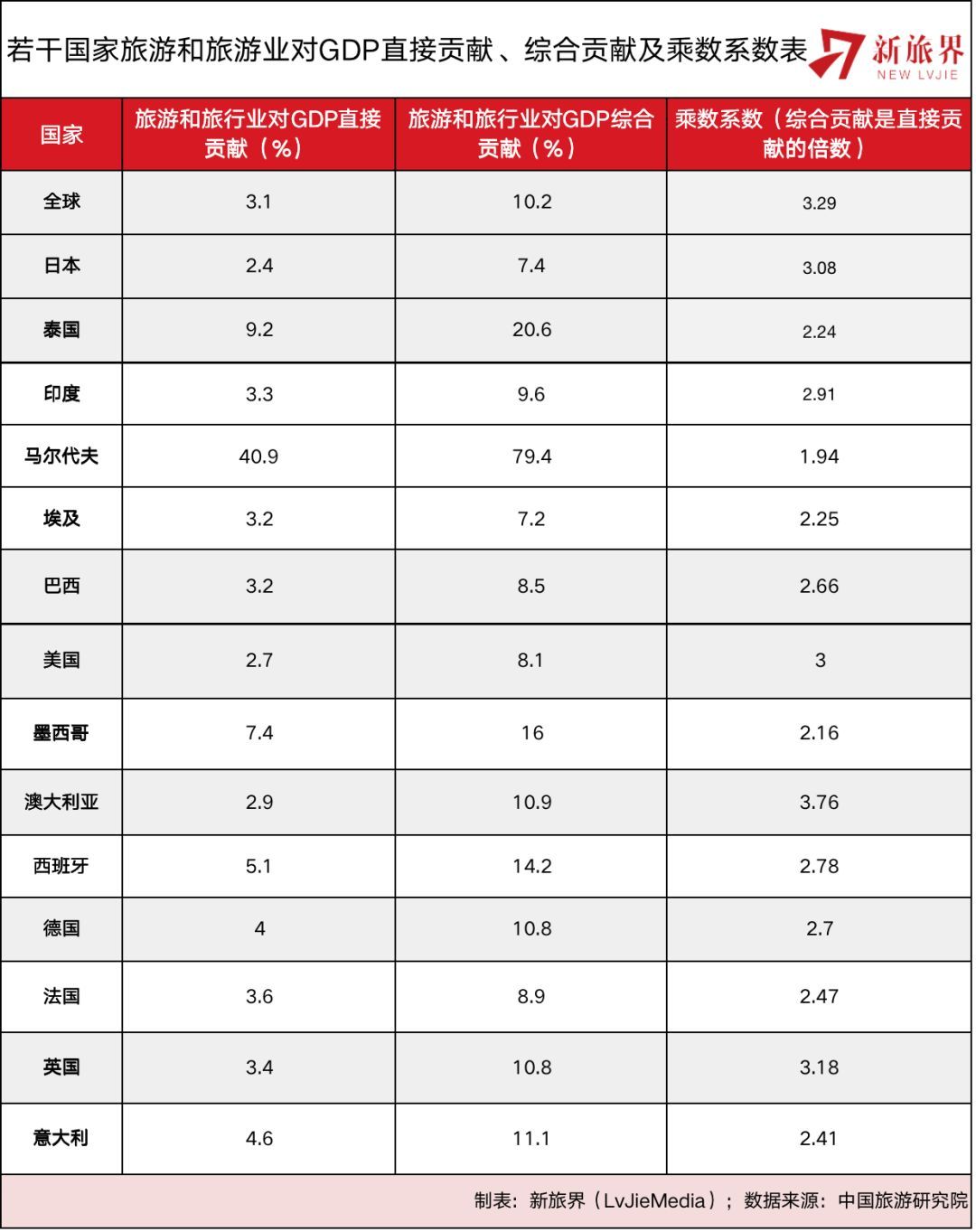 2016年全球旅游業對GDP的直接貢獻為3.1%,對GDP的綜合貢獻全球平均為10.2%,乘數效應為3.29。