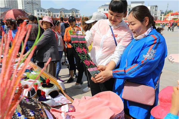 “今天展示的刺繡作品與眾不同,色澤鮮艷絢麗,圖案類型眾多,古樸大方。每一件都讓人愛不釋手,我都很非常喜歡。”當天,來自寧夏的游客邵雯雯女士感慨地對筆者說道。