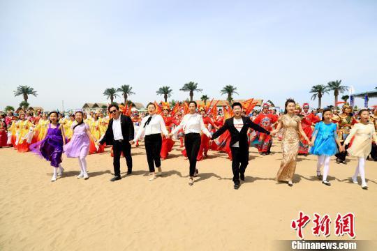 在博斯騰湖大河口景區西海沙浪景點,來自該縣的500余位能歌善舞的非遺傳承人和民間藝人們,穿著蒙古族盛裝,在舞臺上盡情表演。