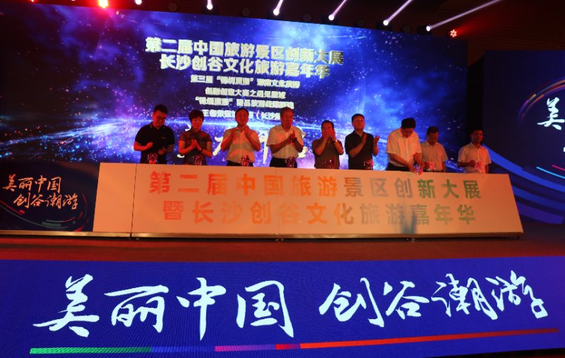 6月30日,第二屆中國旅游景區創新大展暨長沙創谷文化旅游嘉年華活動在長沙開幕。中國旅游景區協會秘書長霍建軍、長沙市文旅廣電局局長楊長江、天心區區長黃滔出席開幕式并致辭,湖南省文旅廳副廳長肖凌之宣布開幕。湖南省文化和旅游廳、長沙市、天心區、望城區有關領導及中國旅游景區協會理事長、副理事長、理事會員單位和相關企業等共計300余人參加。