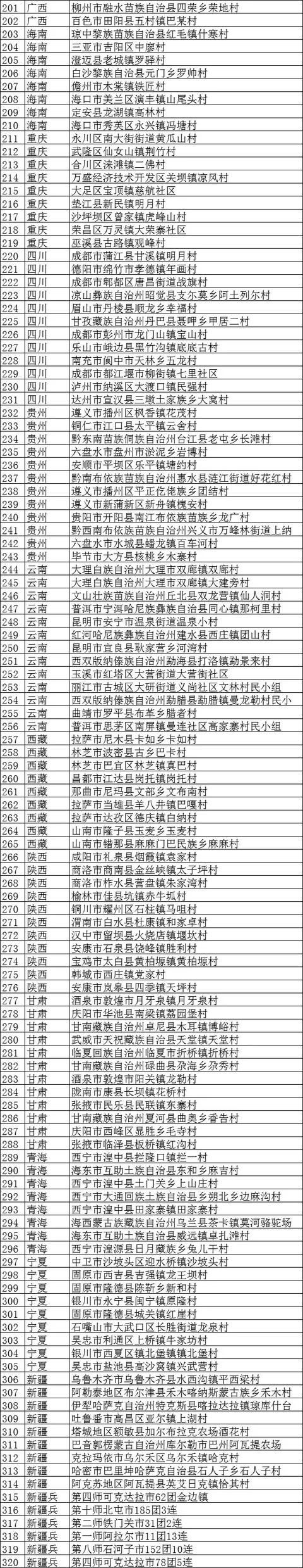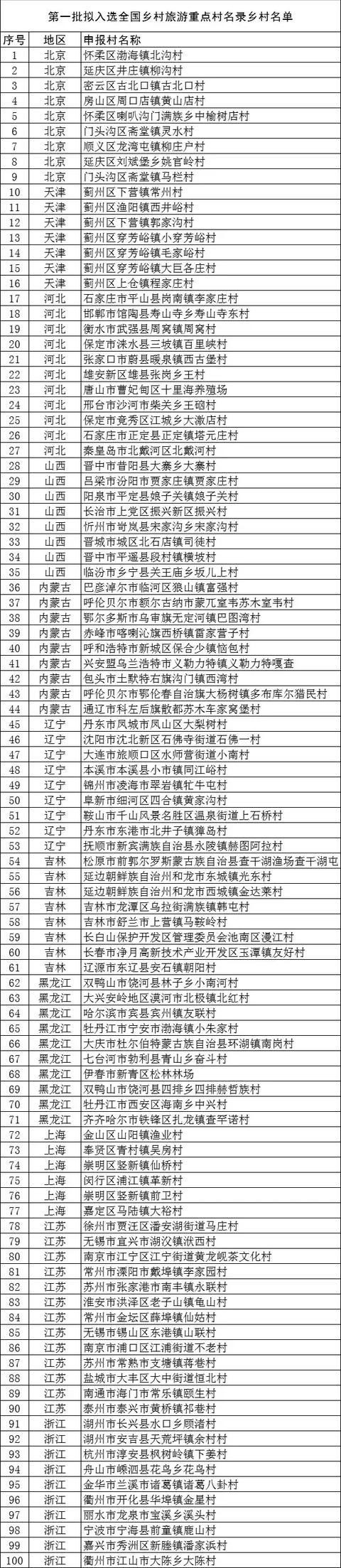 按照《“十三五”旅游業發展規劃》《國務院關于促進鄉村產業振興的指導意見》提出的建立全國鄉村旅游重點村名錄要求,文化和旅游部會同國家發展改革委聯合開展了全國鄉村旅游重點村名錄遴選工作,確定了第一批擬入選全國鄉村旅游重點村名錄鄉村名單,現予以公示。