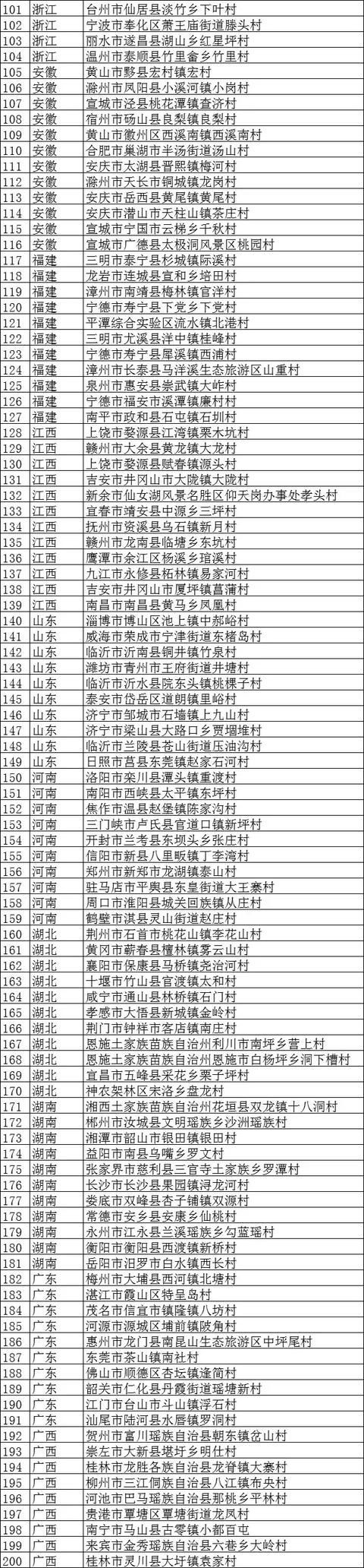 附:第一批擬入選全國鄉村旅游重點村名錄鄉村名單