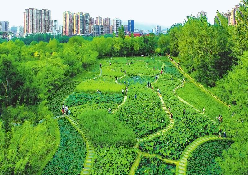 廣元南河濕地公園荷花池塘。?(廣元市委宣傳部供圖)