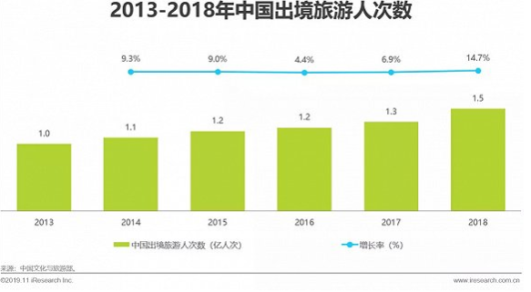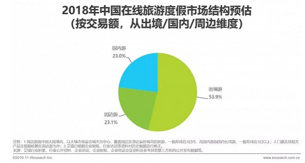艾瑞數(shù)據(jù)顯示,2018年中國在線旅游度假市場中,出境游占比繼續(xù)提升至53.9%,受到高客單價(jià)以及出境游客持續(xù)增長的因素影響,出境游占比將保持穩(wěn)定提升態(tài)勢。