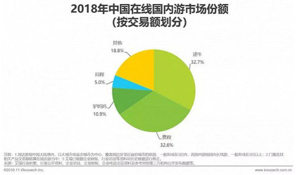 艾瑞數(shù)據(jù)顯示,在2018年中國在線出境游市場中,途牛為市場第一,份額為39.9%,第二和第三是攜程和同程,分別占比 為26.9%及11.5%;在國內(nèi)游市場中,途牛、攜程和驢媽媽分別占據(jù)前三席位,市場份額分別為32.7%、32.6%及10.9%;而在周邊游市場中,驢媽媽以41.0%的份額位列市場第一,同程和攜程均以13.0%的份額分別占據(jù)第二和第三的位置。