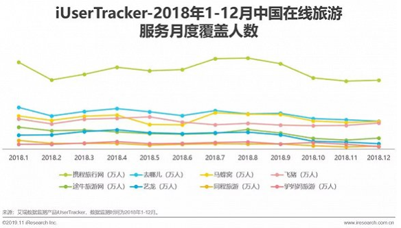 艾瑞監(jiān)測數(shù)據(jù)顯示,2018年攜程仍穩(wěn)居中國在線旅游度假PC端主要網(wǎng)站月度覆蓋人數(shù)的第一位置,第二梯隊(duì)中的各家流量數(shù)據(jù)差異較小。
