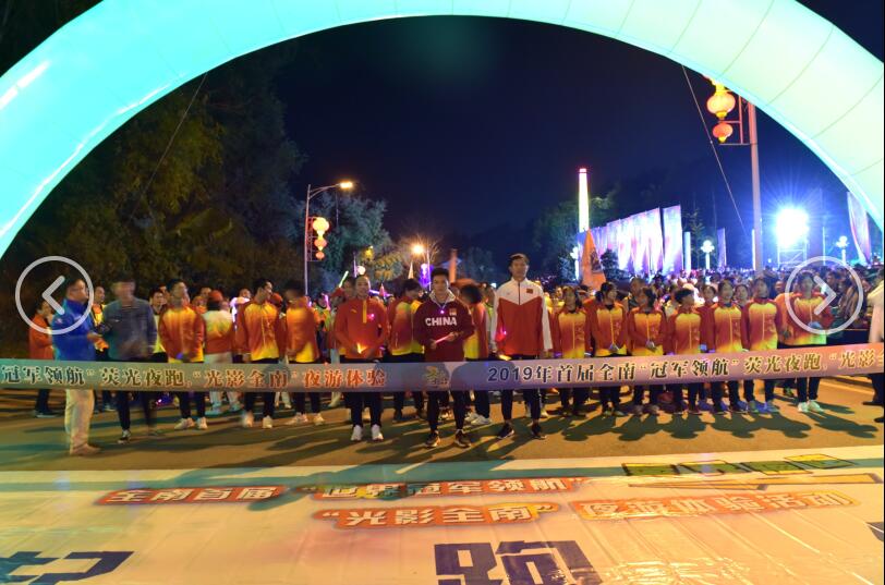近日,江西省全南縣首屆“世界冠軍領航”熒光夜跑“光影全南”夜游體驗活動在該縣梅子山北門廣場鳴笛開跑。由世界速度攀巖冠軍鐘齊鑫、全國皮劃艇冠軍林慧群、全國賽艇冠軍鐘伽舜3人領跑的600余名夜跑愛好者“全副武裝”,穿越華麗璀璨的夜色全南城。在夜的襯托下,點點熒光匯成銀河般的紐帶,為夜晚的全南增添了一道亮麗的風景線。