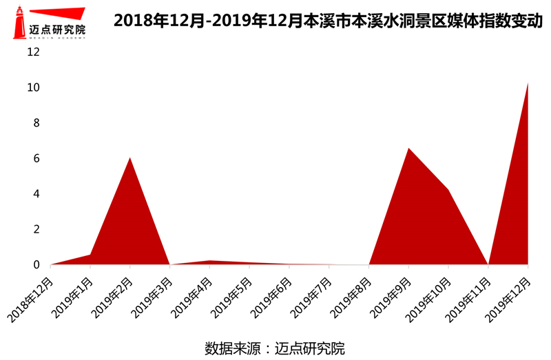就12月媒體指數表現而言,本溪市本溪水洞景區表現最優,指數增至10.29,排名整體提升208位,相較于上半年,該景區下半年媒體關注度較高。