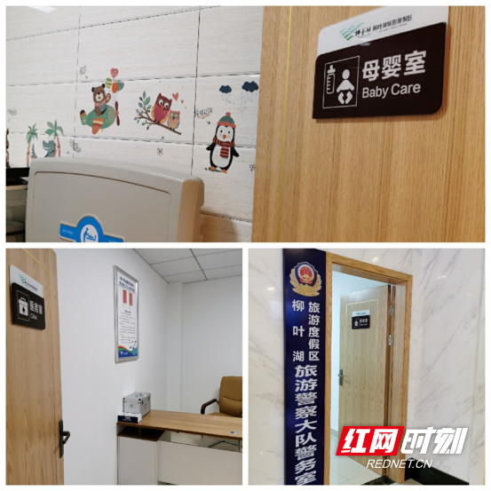 游客中心內(nèi)設(shè)置有休憩桌椅,可同時滿足40位游客的休憩需求;設(shè)置了警務(wù)室、醫(yī)務(wù)室和母嬰室,并設(shè)有自助查詢機,可供游客便捷查詢柳葉湖旅游資訊、活動、路線等信息;設(shè)有共享充電寶,供游客隨時租借使用;擺放了各類宣傳資料,供游客免費取閱。此外,游客中心還提供自助免費飲用水,提供雨傘、童車、輪椅、拐杖等便民設(shè)施的租借服務(wù)。