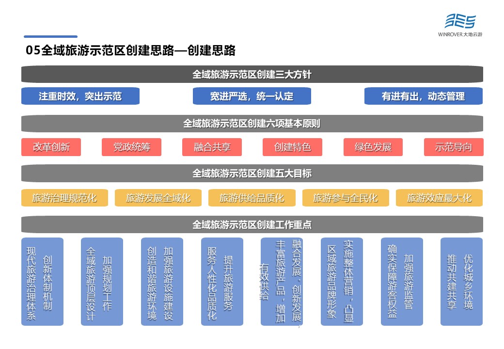 即改革創(chuàng)新、黨政統(tǒng)籌、融合共享、創(chuàng)建特色,綠色發(fā)展,示范導向,為示范區(qū)創(chuàng)建指明方向,各個示范區(qū)創(chuàng)建單位,可以大膽探索、統(tǒng)一思想,真正從市場邏輯角度認同全域旅游發(fā)展理念,推動旅游戰(zhàn)略轉型順利實施。