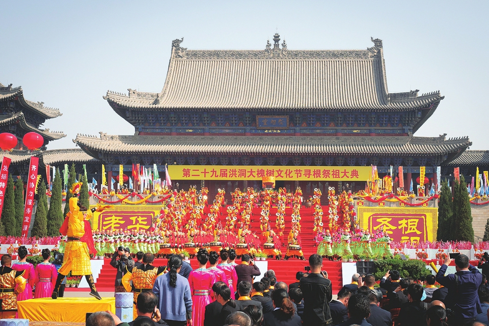 連續多年舉辦的洪洞大槐樹文化節尋根祭祖大典吸引了各地游客的參與。本報記者栗美霞攝