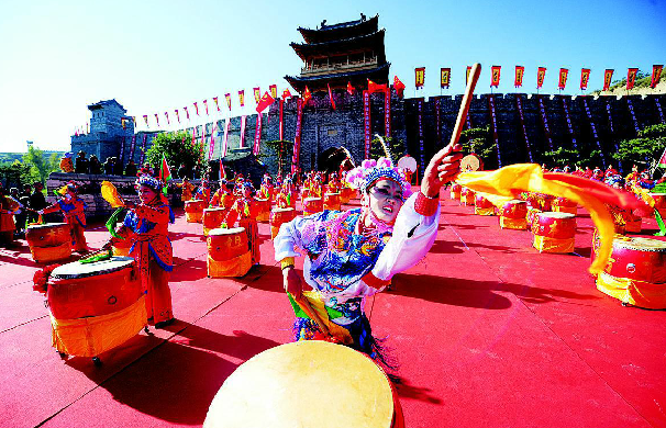 青龍古鎮民俗活動吸引游客前來旅游。鄧寅明攝