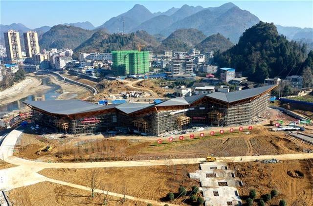 近段時間,在宣恩縣沙道溝鎮中國土家泛博物館(彭家寨)項目游客集散中心建設現場,工人們正加緊對游客集散中心附屬設施進行施工。