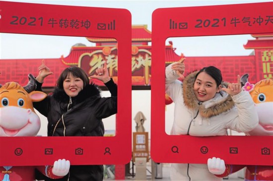 “牛”轉乾坤乾坤灣,紅紅火火過大年。2月9日,延川縣乾坤灣景區,游人如織,現場的布景透著濃濃的年味。景區入口處的景觀門上“‘牛’轉乾坤”的字樣和圖案,吸引了大批游客前來拍照留念。