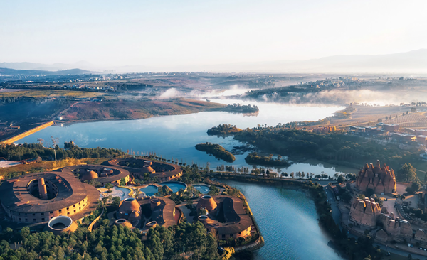 建設(shè)“健康生活目的地”的目標(biāo)一經(jīng)確立,東風(fēng)韻的種種優(yōu)勢(shì)就更加清晰地顯現(xiàn)出來(lái)。特殊的氣候緯度:東風(fēng)韻海拔1400米;位于北緯25度黃金氣候生態(tài)帶上,年日照2176小時(shí),年平均氣溫約18.8攝氏度,冬無(wú)嚴(yán)寒,夏無(wú)酷暑。日趨便利的交通網(wǎng):東風(fēng)韻位于昆明“一小時(shí)”經(jīng)濟(jì)圈,兩條高速公路過(guò)境;從彌勒到昆明,高鐵27分鐘可達(dá);彌勒市通用機(jī)場(chǎng)已通航,連接兩廣乃至全國(guó)。豐富的負(fù)氧密度:彌勒森林覆蓋率達(dá)43.84%,被譽(yù)為“空中維生素”的負(fù)氧離子含量超過(guò)8000個(gè)/立方厘米,具有良好的自然療愈和康復(fù)作用。多元的藝術(shù)維度:藝術(shù)、建筑與葡萄美酒的聚集。藝術(shù)產(chǎn)業(yè)功能配套有湖泊浸潤(rùn)滋養(yǎng)的十萬(wàn)畝高原葡萄,成為藝術(shù)愛(ài)好者及美酒薈萃之地。建筑藝術(shù)方面,美憬閣酒店已經(jīng)拿到了18個(gè)國(guó)際大獎(jiǎng),國(guó)際藝術(shù)中心則獲得中外多個(gè)公共設(shè)計(jì)大獎(jiǎng)。