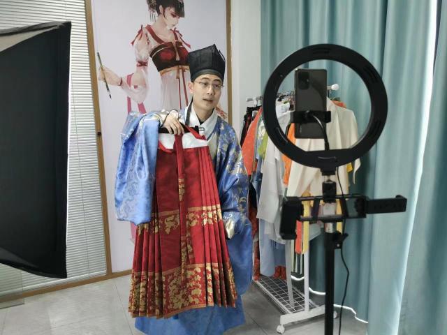 有趣的是,與現代潮流服飾一樣,漢服也有著自己的流行風向標?!懊總€朝代的服飾特點都不太一樣,前幾年做明制漢服比較多,這兩年做宋制、唐制的漢服居多,宋制服侍更加貼近現代生活,也更加日常。”沈燕做的漢服形制和布料,也需要從工廠專門定制的,“中國傳統布料跟紋樣結合在一起,織在布里面,遠看不易發現,近看則樸素中透著精致與華麗。”