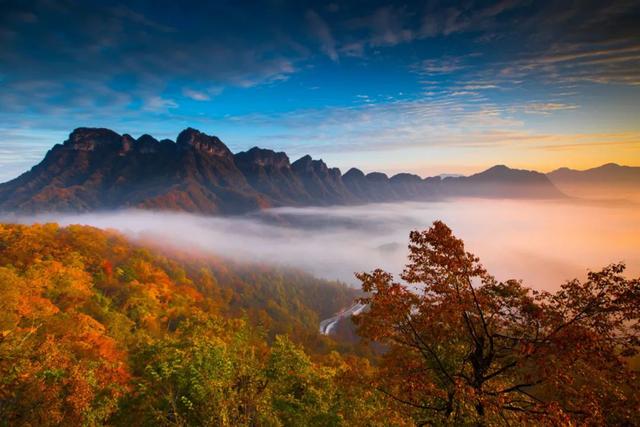 “紅葉天下美杜鵑千年艷,清清韓溪河相守在月潭”,美麗的光霧山如詩如畫,在這里“春賞杜鵑、夏納清涼、秋品紅葉、冬覽霧凇”,四季皆景。清晨從映水壩乘索道而上,站在海拔2300米的香爐山巔,放眼徐徐展開的紅葉畫卷,古樹盆景與奇峰、怪石、絕壁融為一體,日出、晚霞、云海猶為壯觀。夜幕降臨,行浸式夜游項目《夢境光霧山》和大型舞臺實景劇《巴山夜雨》等,應(yīng)用裸眼3D、霧氣成像、AR互動等光影技術(shù),生動講述巴人的起源、發(fā)展及精神文化,讓人流連忘返。