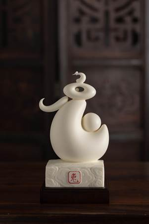 在眾多生肖兔瓷文創(chuàng)產(chǎn)品中,福建省陶瓷藝術(shù)大師彭成雄的作品頗具特色。他將生肖文化、陶瓷文化與漢字文化完美融合,設(shè)計成一款漢字造型的“中華兔尊”。同時,他還通過瓷雕技藝,將二維的線條、結(jié)構(gòu)以立體的形態(tài)表現(xiàn)出來,更好地展現(xiàn)整體順滑、圓潤、飽滿的視覺效果,并且從造型上呈現(xiàn)一種近似象形文字的趣味感,讓欣賞者產(chǎn)生無限的想象空間。