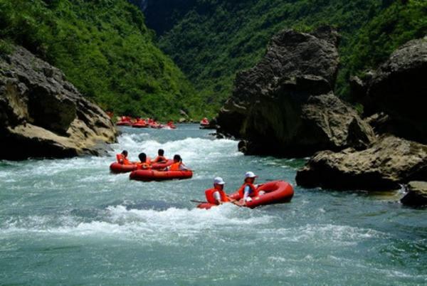 毗鄰的務川自治縣豐樂鎮,洪渡河漂流的熱度隨著氣溫的升高,呈現火熱態勢,一艘艘皮劃艇順流而下,游客們的歡呼聲和尖叫聲此起彼伏。