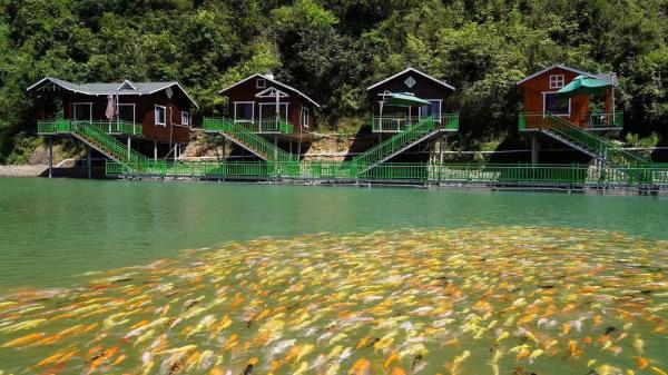 相較常規(guī)農(nóng)家樂,山水漁莊以秀美溪景風光為特色資源,岸畔規(guī)劃燒烤露營區(qū)、民宿區(qū)、垂釣區(qū)、農(nóng)家田園果蔬采摘區(qū)、錦鯉觀賞區(qū)、觀景徒步區(qū)、休閑舞臺演唱區(qū)等功能分區(qū),占地3.3公頃多,分兩期開發(fā),目前正陸續(xù)完善內(nèi)部設施,提高游客的康養(yǎng)度假體驗感。