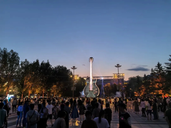 華燈初上,夜幕降臨,五彩斑斕的燈光在吉他雕塑上跳躍,集安大吉他廣場燈光秀魅力上演。不遠處,大吉他美食燒烤、海鮮小炒、大冷面等美食攤位前人頭攢動,吸引著游客尋“味”集安,暢享旅途。