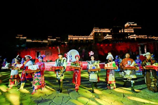 全國首部羌文化生態(tài)旅游大型沉浸式夜游《入夢古羌》震撼上演,為大家奉獻(xiàn)了一場極具奇幻絢麗、美輪美奐的沉浸式藝術(shù)盛宴。以“川西旅游1號”動(dòng)車為載體帶領(lǐng)大家走進(jìn)阿壩童話夢境,鏈接自駕之州、研學(xué)之州、民宿之州、網(wǎng)紅之州、好客之州的展示裝置,集合光影、視頻、音樂、演出等多維立體展示方式,在中國古羌城全面展示了阿壩州“五個(gè)之州”和“十大品牌”,讓現(xiàn)場與會(huì)嘉賓及眾多游客一起在沉浸式的氛圍中深度體驗(yàn),感受“阿壩處處見奇景,處處是文化,處處皆名品”的無限魅力,開啟了一段奇妙的旅程。