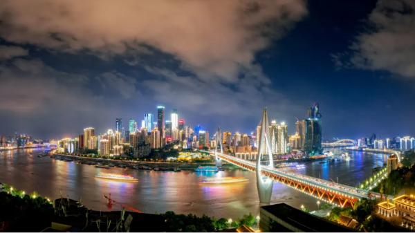 體驗(yàn)山水之美,到“母城”渝中——“有山有水,大山大水,江峽相擁,山環(huán)水繞”,山形水勢(shì)、兩江圍合的半島氤氳出“江崖街洞天”獨(dú)樹一幟的城市風(fēng)貌。索道游動(dòng)著一城風(fēng)景,輪渡穿梭于悠悠江水,列車穿山越水、穿樓而過,“云端之眼”屹立藍(lán)天白云間。