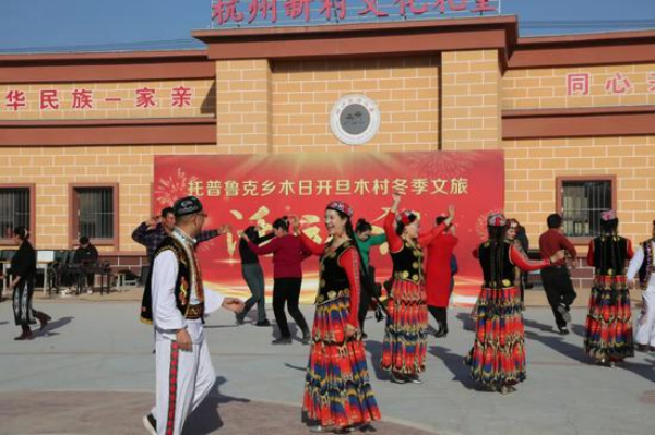 近日,托普魯克鄉木日開旦木村正在開展冬季文旅活動。活動在精彩的歌舞表演中拉開帷幕,現場人頭攢動,熱鬧非凡?;顒蝇F場介紹了木日開旦木村文旅產業示范項目基本情況及運營發展規劃,并進行了簽約。依托文旅融合,該村在杭州市援疆指揮部的大力幫扶下,讓鄉村既有“顏值”又具有“內涵”,煥發生機活力,邁向富裕富足。