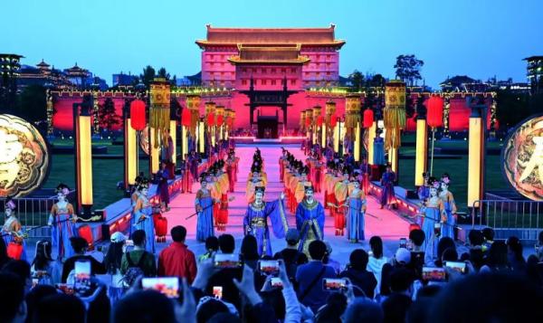 發展出題目,改革做文章。阿房宮遺址旁,歷史劇《赳赳大秦》拉開帷幕,秦王朝一統山河的長卷漸次展開;秦漢沙河古橋遺址旁,《絲路之聲》以音樂劇的形式展現漢代長安市井的繁華;驪山腳下,冰火《長恨歌》再現盛唐的風華與浪漫;“折柳送別”的灞河之畔,歌舞劇《駝鈴傳奇》帶著觀眾體驗唐代絲綢之路的冒險與驚奇;“曲江流飲”的芙蓉園里,研習東倉鼓樂50載的趙筱民以鼓、箏、琵琶等二十余種中國傳統樂器,奏響“中國古代交響樂”;厚重巍峨的永寧門下,游客們在《夢長安—大唐迎賓禮》中感受中華禮儀文化的魅力。