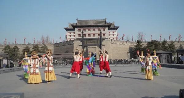 春節期間,“于闐樂舞”作為新疆和田縣“文旅+演藝”對外輸出的代表,走出新疆,走進西安,在西安大唐不夜城、西安城墻景區、漢長安城未央宮遺址公園、大明宮遺址公園等地為西安市民和游客奉獻了一場場精彩的文化演出,將這一與唐文化密切融合的古老藝術呈現給廣大觀眾。