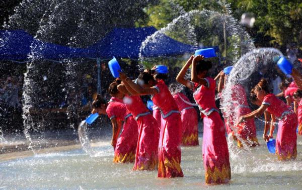 云南多個縣市都打造了潑水廣場、每年制定潑水節(jié)日程,安排賽龍舟、中外大趕擺、音樂會等活動。在西雙版納州景洪市傣族園景區(qū),每天都會開展?jié)娝駳g,游客一年四季都能體驗潑水節(jié)的快樂。