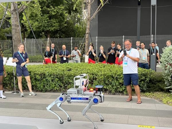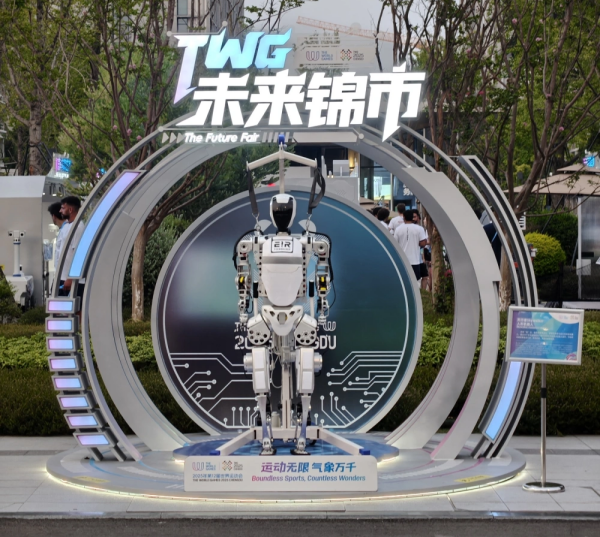 不遠(yuǎn)處,搭載國產(chǎn)空間大模型“悠然無界”的機器狗“GoGo”正頂著烈日運送行李。其防風(fēng)防雨機身與50公斤負(fù)重能力,讓它成為全天候“超級向?qū)А?。更令人驚嘆的是,為運動員服務(wù)的這些科技產(chǎn)品,90%都來自成都本土創(chuàng)新。