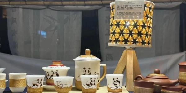 在崇州道明竹編非遺傳承人劉羅琳的攤位,聾啞匠人用手機打字與顧客交流。其獨創(chuàng)的漆器竹編蓋碗茶具將熊貓、漆藝與竹編巧妙融合,引得運動員紛紛合影留念。這些由殘疾人制作的竹編燈罩透出暖光,不僅照亮了攤位,也照亮了非遺傳承的堅韌力量。