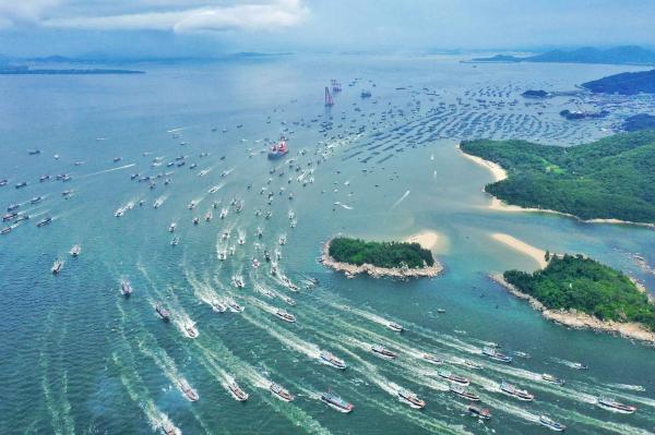 816日正午1200,陽光灼熱,海風驟緊。南海伏季休漁期正式結束的號角,在綿延海岸線上齊齊鳴響。博賀港內,千艘漁船汽笛震天,白帆如云;陽江海域,3400余艘漁船劈波斬浪,駛向蔚藍。岸上快門聲此起彼伏,漁民揮動的紅旗漸漸模糊成海平線上的紅點。