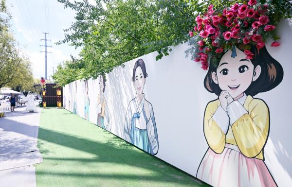 近日,中國朝鮮族民俗園美食街新增一處亮眼景觀——美辰打卡墻。墻上繪制了7名身著朝鮮族傳統服飾、頭頂各式鮮花裝飾的少女形象,吸引了眾多游客駐足拍照,成為園區又一熱門打卡地。這一創意源于延邊春天傳媒項目團隊在網上看到的一幅老墻繪畫作品。畫面中人物與墻面環境的融合感給了團隊靈感,他們在此基礎上延伸思考,結合民俗園的文化特色,決定以朝鮮族服飾為核心元素,打造美辰打卡墻。傍晚時分,中國朝鮮族民俗園美食街的美辰打卡墻前,仍聚集著拍照的游客。
