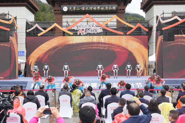 1018日,第二十三屆四川光霧山國際紅葉節(jié)開幕式上,多臺機器人與舞蹈演員同臺演繹國家級非遺《翻山鉸子》。金屬機械臂隨傳統(tǒng)韻律翻飛,與演員的靈動舞姿相映成趣,剛勁的非遺動作與科技感十足的機械運轉(zhuǎn)完美融合,瞬間點燃現(xiàn)場氛圍。